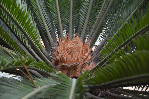 苏铁喜热,华南地区铁树开花司空见惯,但北方铁树就难得开花,因此有“千年铁树开了花”一说,铁树的“花”实际上是铁树的孢子,分雌雄两种,且雌雄异株。苏南一带冬春气温较高的年份,是能见到有铁树开花,但同一棵铁树三年两头地开花仍是难得一见。