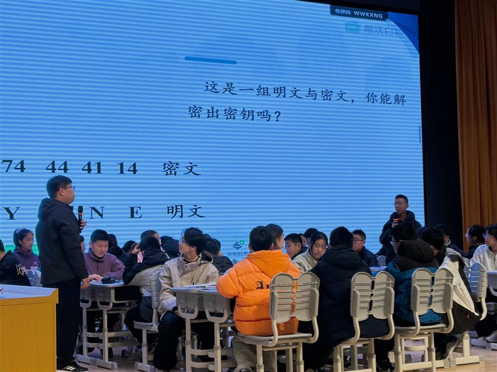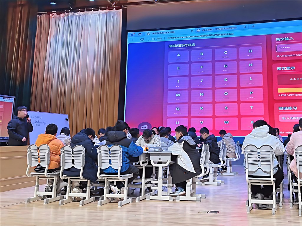 常州市北环中学许羚老师开设七年级数学活动课《密码中的数学》,以 AI 技术为纽带,构建沉浸式密码探究课堂。课始,许老师通过 AI 制作的摩斯密码系统抛出趣味谜题,伴随滴滴答答的密码信号,瞬间点燃学生探索热情,引发“密码如何传递信息”的深度思考。 课堂中,依托AI打造的“码上破解”互动系统,学生自行设计、实时观察。AI系统不仅即时反馈破解结果,还通过阶梯式任务设计,从简单替换密码到复杂组合编码,逐步引导学生归纳总结密码构建的数学逻辑。整堂课气氛热烈,学生们在动手实践与思维碰撞中深化对数学规律的理解,展现出浓厚的探究欲与出色的合作能力。此次授课创新融合AI技术与数学学科核心素养,为数学教学注入新活力,也为初中数学课堂的数字化创新提供了可参考的实践思路。