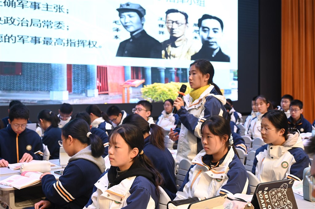 常州市武进区前黄实验学校谢丹老师开设历史课《中国工农红军长征与遵义会议》,以AI生成的长征视频导入新课。随后,引导学生利用DeepSeek、豆包等工具查询长征的背景和原因,尝试多维度对比分析,并在与AI对话的过程中强化历史分析和史料实证的思维和方法,初步领会AI的优势和局限性。接着,通过学生导游介绍“遵义会议数字纪念馆”,寻找会议的重要决策文件,然后在此基础上分析会议的转折意义。教师还利用VR资源带领学生沉浸式体验长征的艰辛,让学生通过长征故事的讲述和与智能体红军“秦大山”的对话中,体悟长征精神,并用腾讯文档实时生成长征精神关键词云图。最后组织学生讨论新时代如何走好长征路,实现强国梦。此次教学尝试突破传统课堂局限,通过数字化手段增强学生的历史感知与情感认同,实现知识学习与素养培育的有机统一。